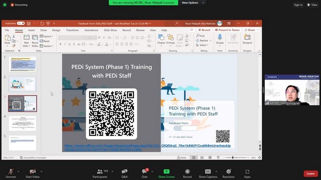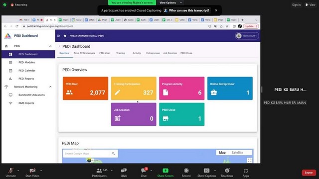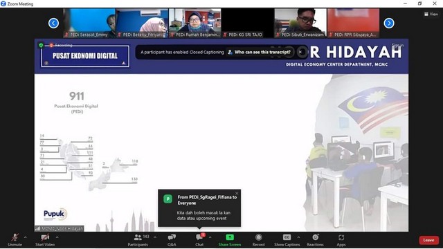 22 Julai 2023 | Aktiviti TerkiniPada 21 Julai 2023, Latihan Atas Talian Sistem PEDi (Fasa 1) telah dilaksanakan yang mana melibatkan staf Pusat Ekonomi Digital (PEDi). Latihan diadakan menggunakan aplikasi Zoom. Latihan ini diadakan untuk memberi bimbingan kepada staf PEDi untuk mengakses Sistem PEDi secara atas talian. Latihan ini berlangsung sekitar jam 9.30 pagi sehingga jam 1.30 tengah hari.