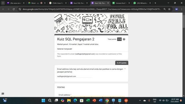 24 Januari 2025 | Aktiviti TerkiniPada 23 Januari 2025, sesi NADI Program Tiny Techies telah diadakan untuk staf Pusat Sebaran Maklumat Nasional (NADI) secara atas talian. Sesi ini adalah untuk petugas mempelajari tentang Asas Pengaturcaraan SQL. Pada sesi ini, petugas telah mempelajari dan menjawab kuiz yang telah disediakan. Sesi ini berlangsung sekitar jam 9.00 pagi sehingga jam 12.00 tengah hari.