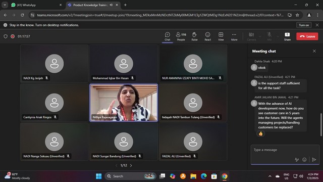 Pada 7 Februari 2025, telah berlangsungnya Staff Training 2025 bagi Pusat Sebaran Maklumat Nasional (NADI) yang tersenarai secara maya melalui aplikasi Microsoft Team. Pihak Sprintz Designs (SD) telah melantik seorang Trainer yang berpengalaman iaitu Puan Nithya Rajasagaran untuk mengendalikan kursus pada kali ini. Tajuk kursus kali ini adalah Product Knowledge : Customer Care.