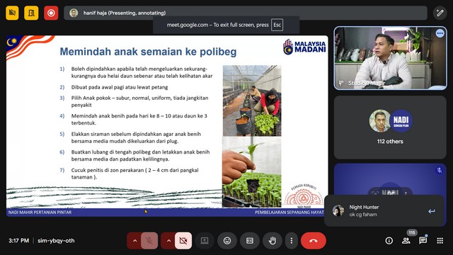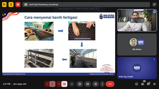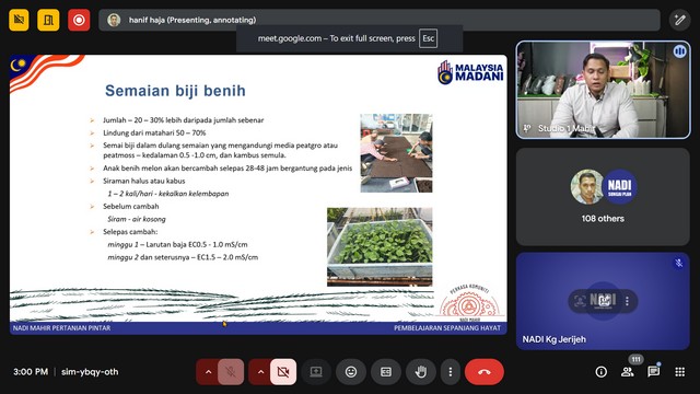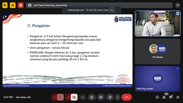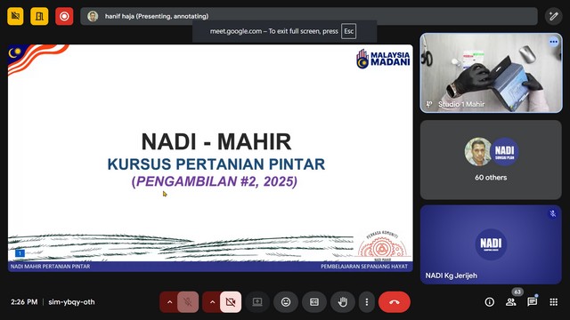 10 September 2025 | Aktiviti TerkiniPada 9 September 2025, Kelas NADIxMAHIR - Mahir Pertanian telah diadakan di Pusat Sebaran Maklumat Nasional (NADI) Kg Jerijeh. Kelas telah diadakan menggunakan aplikasi Zoom mengikut kelas yang disediakan di portal Mahir Training System (MTS). Modul Pertanian Pintar berdasarkan rancangan untuk memberikan pemahaman komprehensif tentang bagaimana teknologi digital dapat diintegrasikan ke dalam proses pengambilan keputusan dalam pertanian.